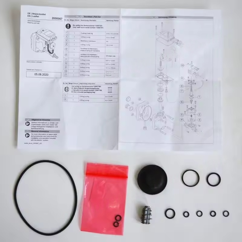 సాధారణంగా, అటువంటి కిట్లు విద్యుదయస్కాంత వాల్వ్ యొక్క నిర్మాణ లక్షణాల ఆధారంగా రూపొందించబడ్డాయి మరియు క్రింది కీలక భాగాలను కలిగి ఉంటాయి (అసలు ఫ్యాక్టరీ కాన్ఫిగరేషన్కు లోబడి):