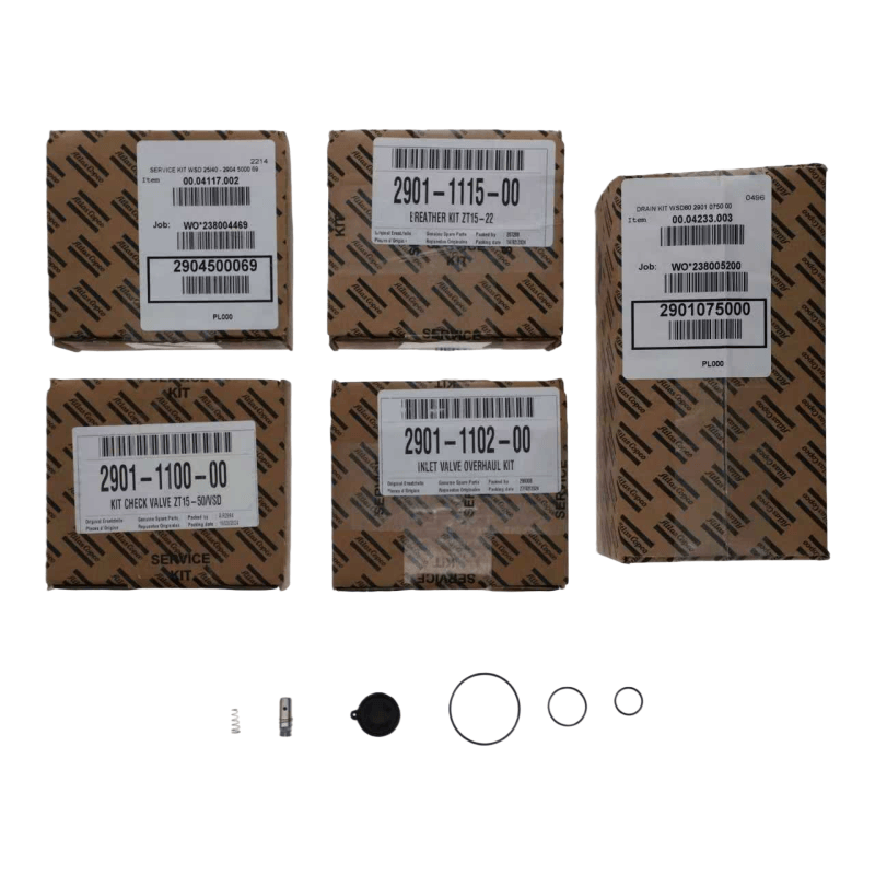 అట్లాస్ కాప్కో 2901112100, ఎయిర్ కంప్రెసర్ మెయింటెనెన్స్ కిట్ అనేది సాధారణ నిర్వహణ దృశ్యాల కోసం రూపొందించబడిన ఒక ప్రామాణిక విడిభాగాల కలయిక. ఇది నిర్వహణకు అవసరమైన కీలక భాగాలను ఒకే టూల్కిట్లో అనుసంధానిస్తుంది. ఈ ఇంటిగ్రేటెడ్ డిజైన్ మెయింటెనెన్స్ సిబ్బందికి విడిగా విడివిడిగా సెర్చ్ చేయడం మరియు మ్యాచింగ్ చేయడంలో ఇబ్బందిని తొలగిస్తుంది. ప్రత్యేకించి స్క్రూ-టైప్ ఎయిర్ కంప్రెషర్లు మరియు ఆయిల్-ఫ్రీ ఎయిర్ కంప్రెషర్ల వంటి సంక్లిష్ట పరికరాల కోసం, ఇది నిర్వహణ తయారీ సమయాన్ని గణనీయంగా తగ్గిస్తుంది మరియు నిర్వహణ సామర్థ్యాన్ని మెరుగుపరుస్తుంది. మెయింటెనెన్స్ కిట్లోని స్పేర్ పార్ట్లు అన్నీ అసలైన ఫ్యాక్టరీ లేదా ఎక్విప్మెంట్ స్పెసిఫికేషన్లకు అనుగుణంగా ఉండే అసలైన ఉత్పత్తులు. వారు కఠినమైన పరీక్ష మరియు ధృవీకరణకు లోనయ్యారు మరియు ఎయిర్ కంప్రెసర్ యొక్క అసలు భాగాలతో ఖచ్చితంగా సరిపోలవచ్చు.