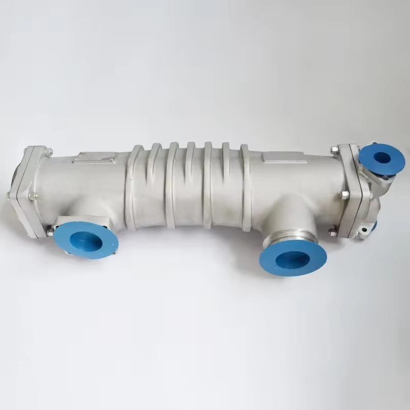 సమర్థవంతమైన ఉష్ణ మార్పిడి రూపకల్పన: శీతలీకరణ మాధ్యమం మరియు చల్లబడిన మాధ్యమం (సంపీడన గాలి / కందెన నూనె) వరుసగా గొట్టాల లోపల మరియు వెలుపల ప్రవహించే బహుళ-ట్యూబ్యులర్ నిర్మాణాన్ని (సాధారణంగా రాగి మిశ్రమం లేదా స్టెయిన్లెస్ స్టీల్ హీట్ ఎక్స్ఛేంజ్ ట్యూబ్స్) ఉపయోగించడం. సంప్రదింపు ప్రాంతాన్ని పెంచడం ద్వారా మరియు అల్లకల్లోలమైన డిజైన్ను ఉపయోగించడం ద్వారా, ఉష్ణ మార్పిడి సామర్థ్యం మెరుగుపడుతుంది.