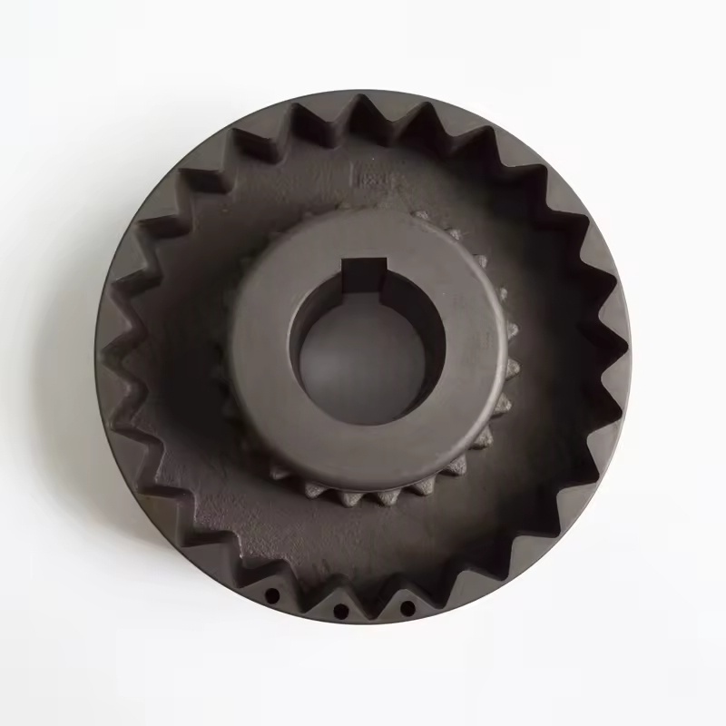 గేర్ ఫ్లెక్సిబుల్ కప్లింగ్: ఈ కలపడంలో గేర్ స్లీవ్ యొక్క సౌకర్యవంతమైన భాగాలు ఫ్లాంజ్ కలపడం యొక్క సగం శరీరంలోని దంతాల వలె అదే సంఖ్యలో దంతాలను కలిగి ఉంటాయి. బయటి దంతాలను సరళమైన దంతాలుగా మరియు బెవెల్ దంతాలుగా విభజించారు. బెవెల్ గేర్ కలపడం పెద్ద కోణీయ స్థానభ్రంశాన్ని అనుమతిస్తుంది, ఇది దంతాల సంప్రదింపు పరిస్థితిని మెరుగుపరుస్తుంది మరియు టార్క్ ట్రాన్స్మిషన్ సామర్థ్యాన్ని పెంచుతుంది, సేవా జీవితాన్ని పొడిగిస్తుంది.