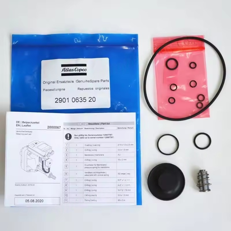 అట్లాస్ కాప్కో EWD330 ఎలక్ట్రానిక్ డ్రైనేజ్ వాల్వ్ కిట్ ప్రధానంగా ఈ క్రింది భాగాలను కలిగి ఉంటుంది: