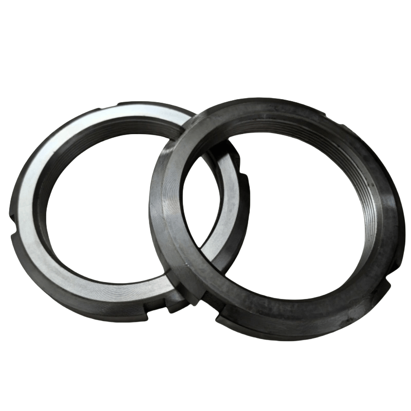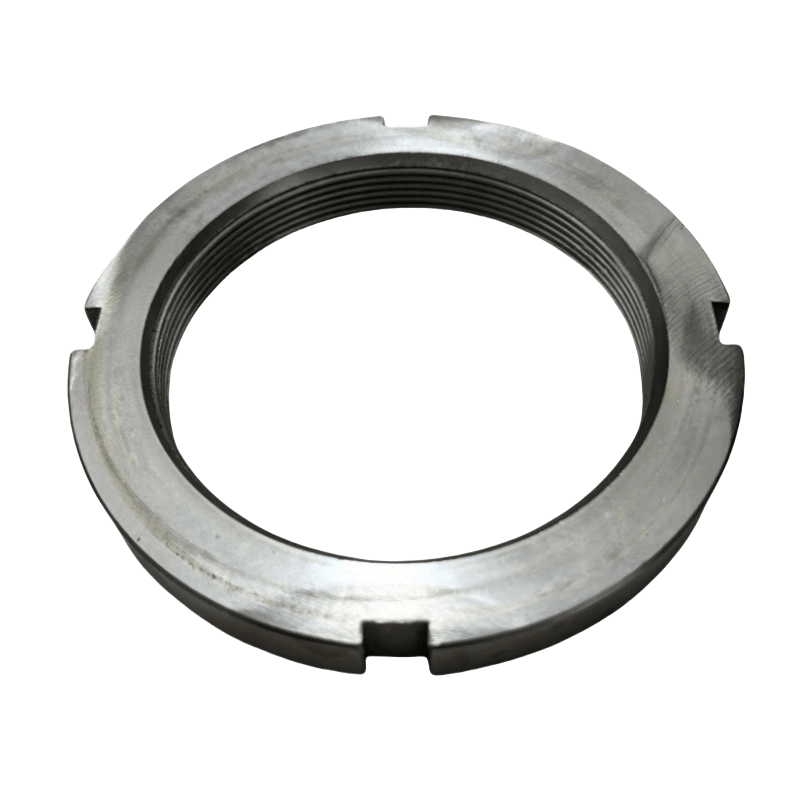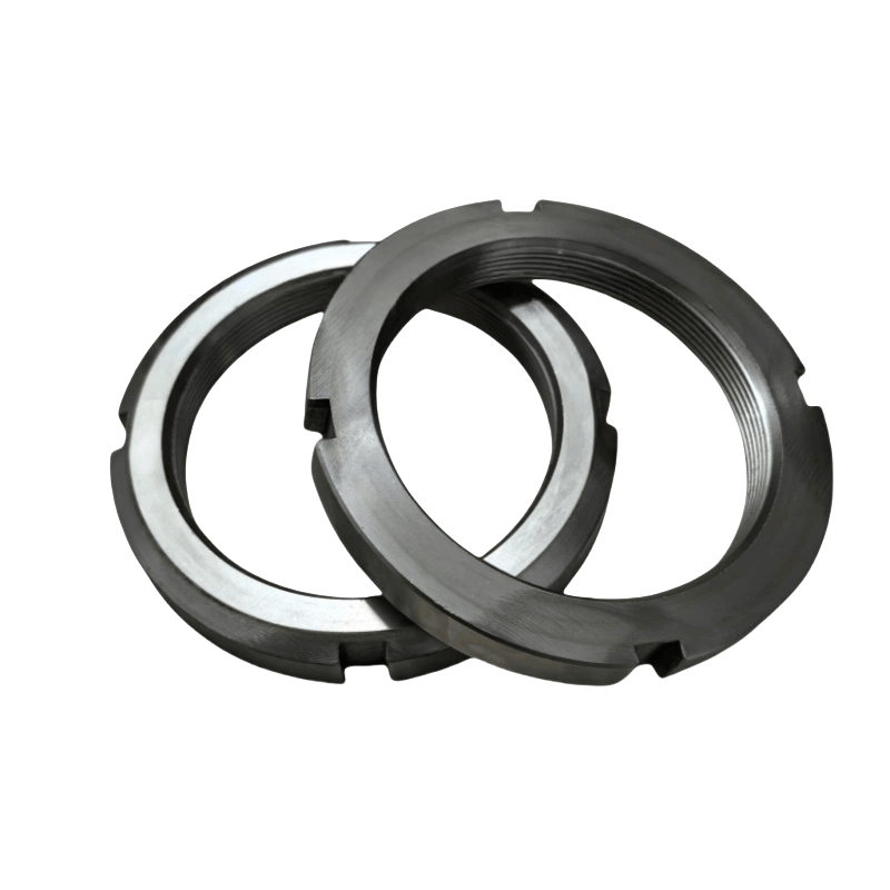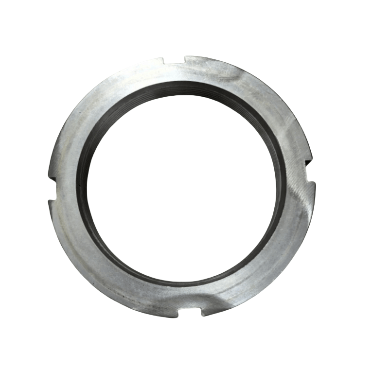 స్లాట్డ్ లాకింగ్ గింజ (ఓపెనింగ్ పిన్తో): గింజలో బోల్ట్ రంధ్రంతో సరిపోయే స్లాట్ ఉంది మరియు లాకింగ్ కోసం ఓపెనింగ్ పిన్ చేర్చబడుతుంది. యాంటీ-లూసింగ్ ప్రభావం నమ్మదగినది మరియు తరచుగా హై-స్పీడ్ రొటేషన్ లేదా తీవ్రమైన వైబ్రేషన్ (క్రాంక్ షాఫ్ట్ చివరలు వంటివి) ఉన్న భాగాలకు ఉపయోగించబడుతుంది.