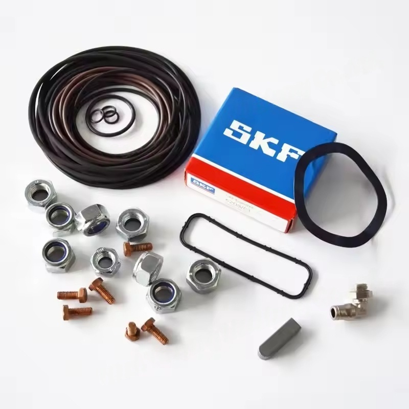 అట్లాస్ కాప్కో ఎయిర్ కంప్రెసర్ స్పేర్ పార్ట్స్ కిట్ మోటార్ ఓవర్హాల్ కిట్ యొక్క విషయాలు మోడల్ మరియు సేవా విరామాన్ని బట్టి మారుతూ ఉంటాయి, అయితే సాధారణంగా ఆయిల్ ఫిల్టర్లు, ఇంధన ఫిల్టర్లు, ఎయిర్ ఫిల్టర్లు, ఇంజిన్ రబ్బరు పట్టీలు మొదలైనవి కూడా ఉంటాయి. ఇది బేరింగ్లు, గేర్లు, సీల్స్, పిస్టన్లు, స్ప్రింగ్స్, బుషింగ్లు మరియు ఇతర భాగాలను కూడా కవర్ చేయవచ్చు.